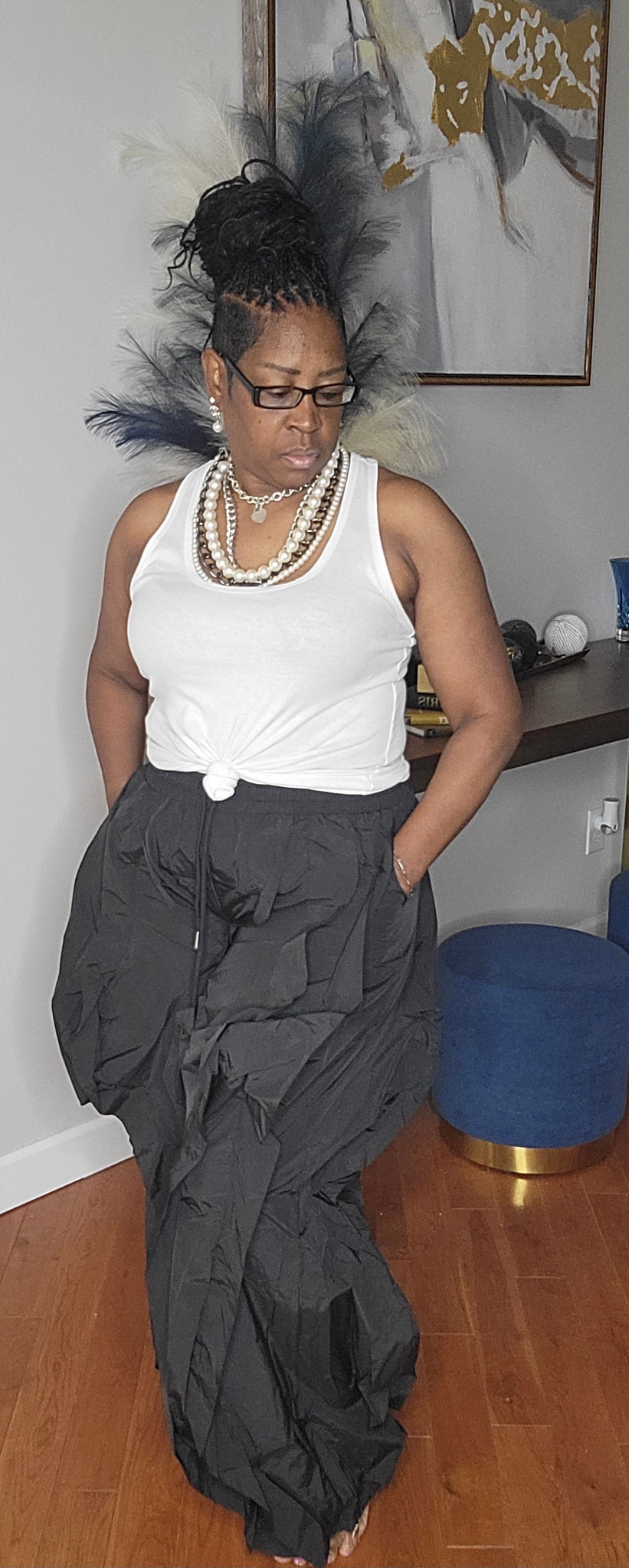 Wide leg drawstring cluster pants with pockets